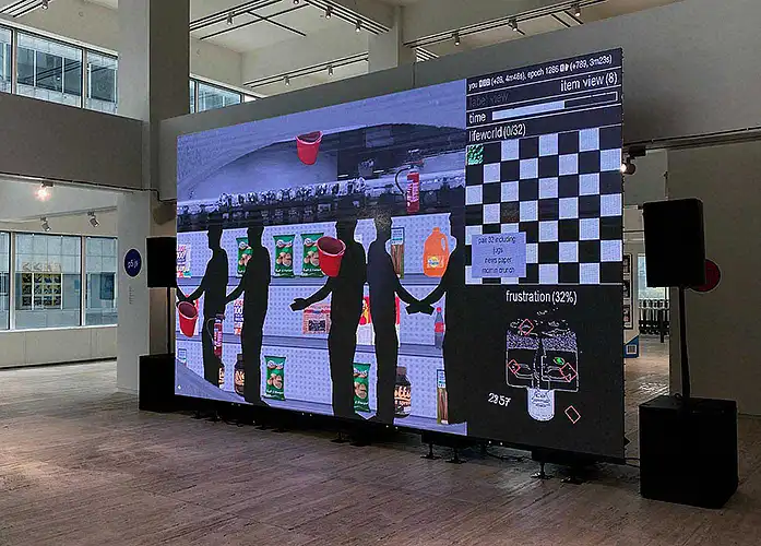 London−based artist duo dmstfctn explores complex systems through the lenses of simulation, fiction and experience. Their immersive performances, video installations and video games demystify systems by replicating and exploring them together with audiences, and remystify them by building new stories and worlds atop them.