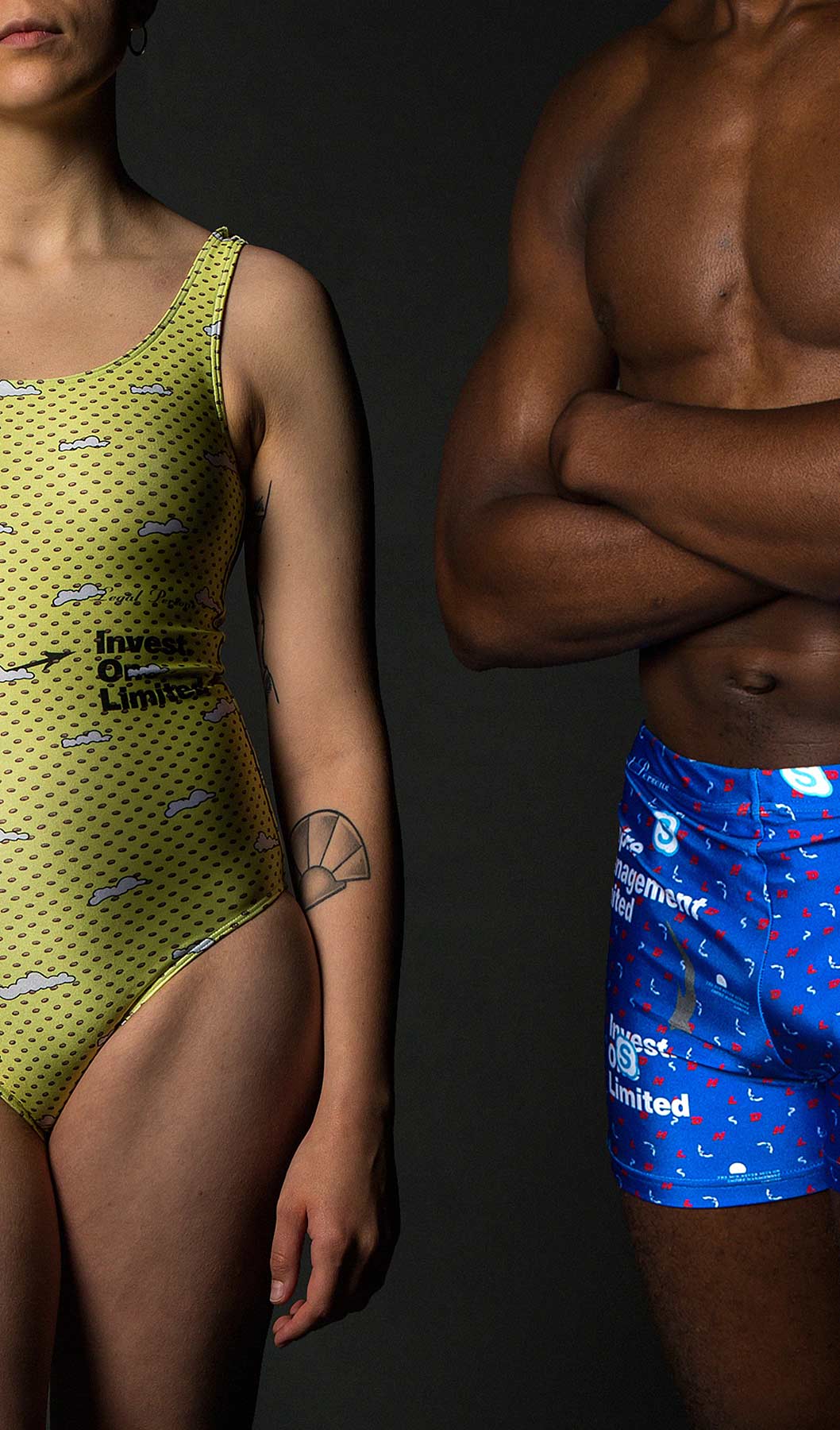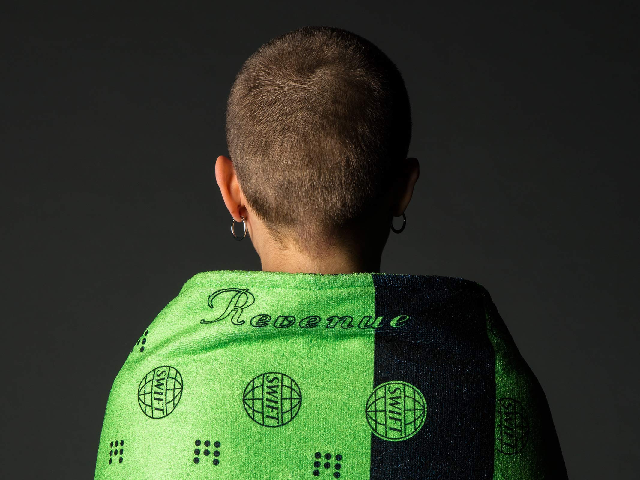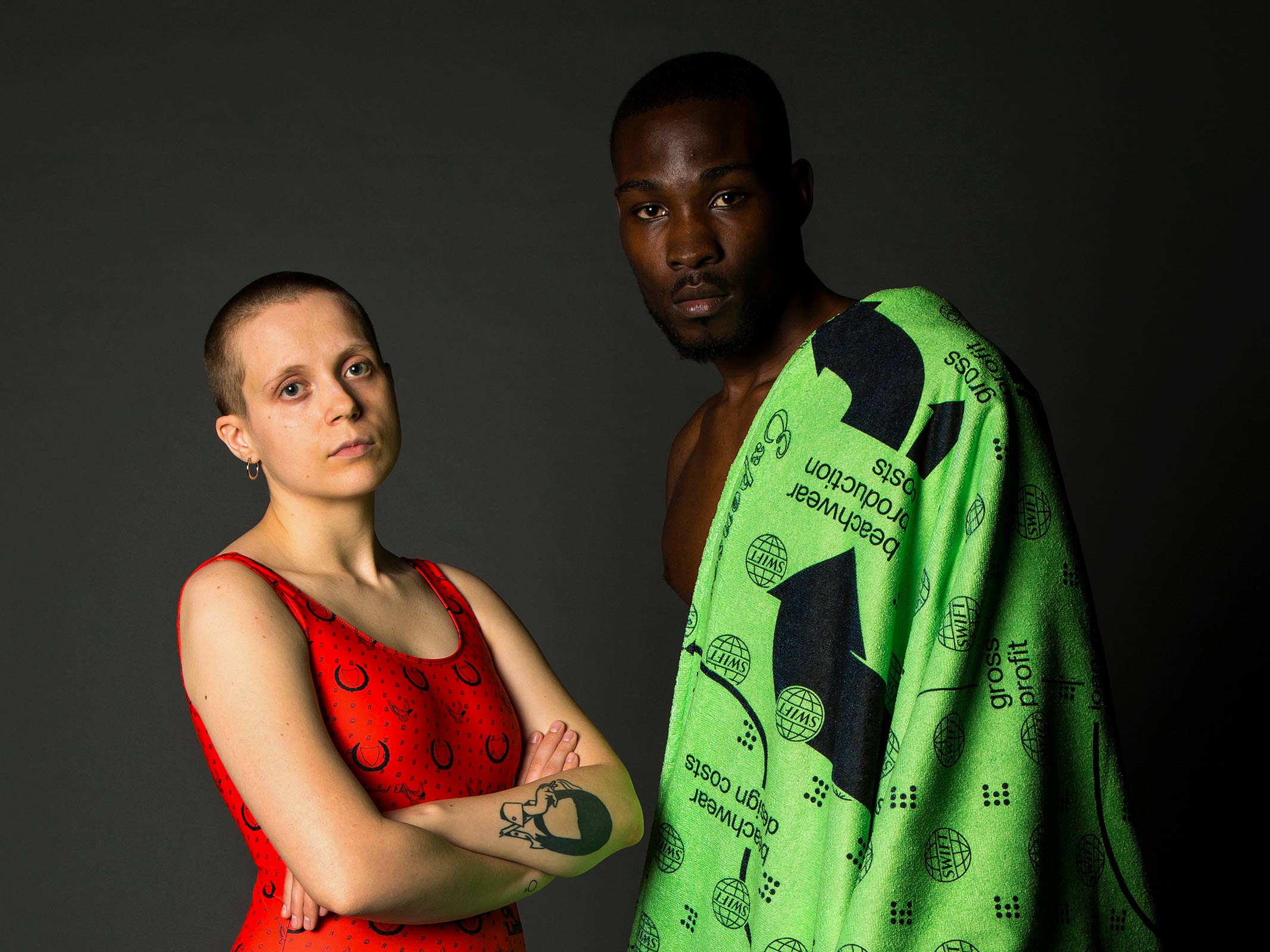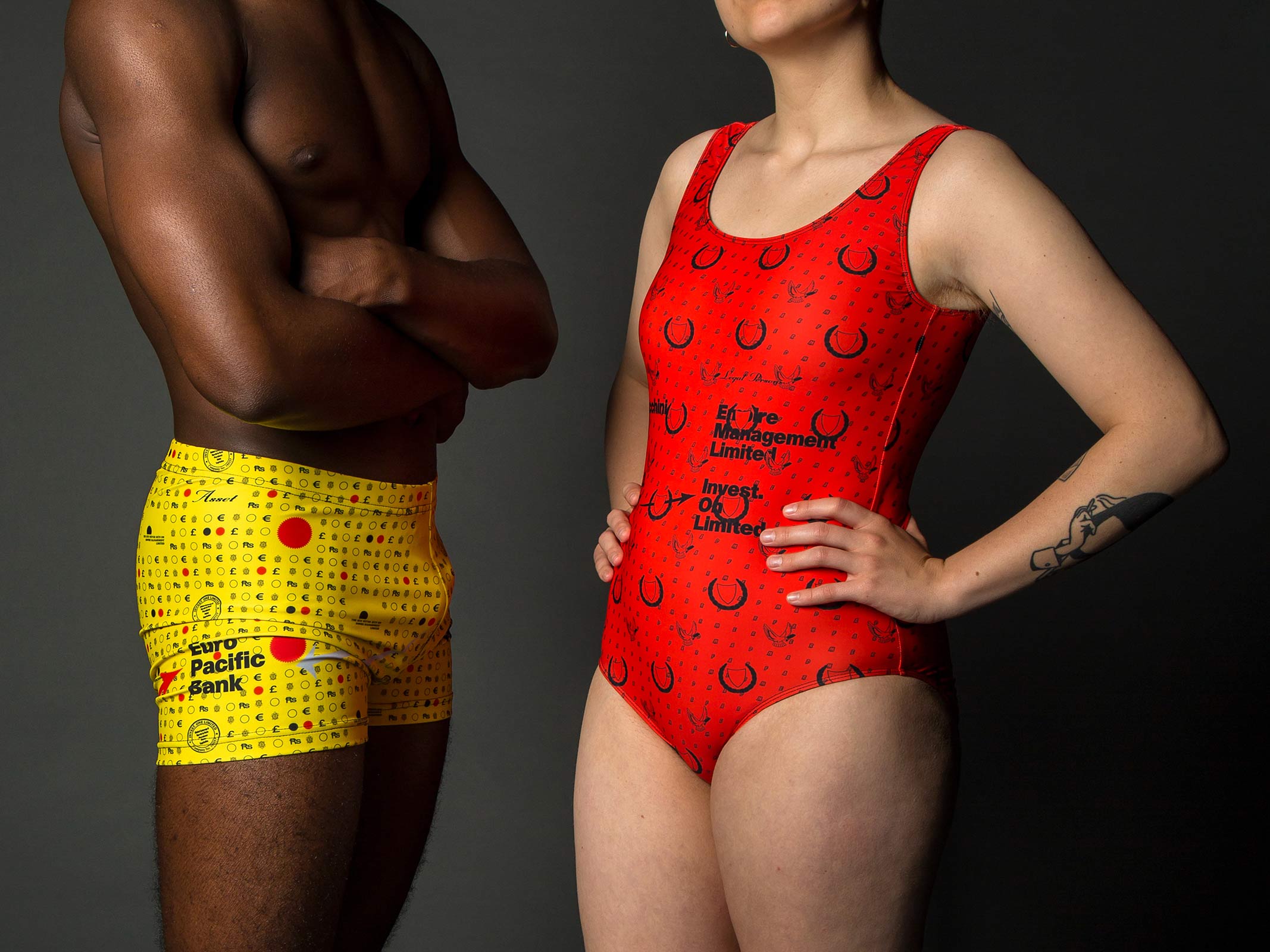 OFFSHORE SS18 is a limited edition beachwear collection sold through an offshore corporate structure set up by dmstfctn. Each purchase through a dedicated online shop activated a functional tax avoidance scheme, moving revenue through the structure to avoid tax. The scheme's details are printed on the apparel as diagrams and patterns. The resulting savings were distributed to members of the public who had invested in the structure during a public performance at transmediale festival in Berlin.