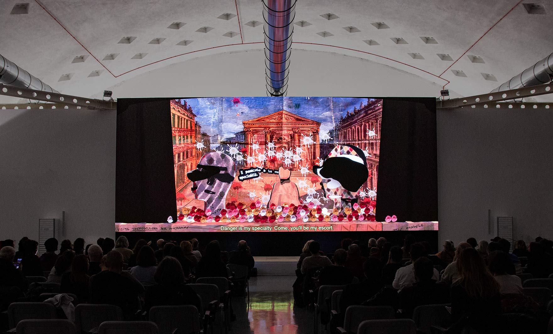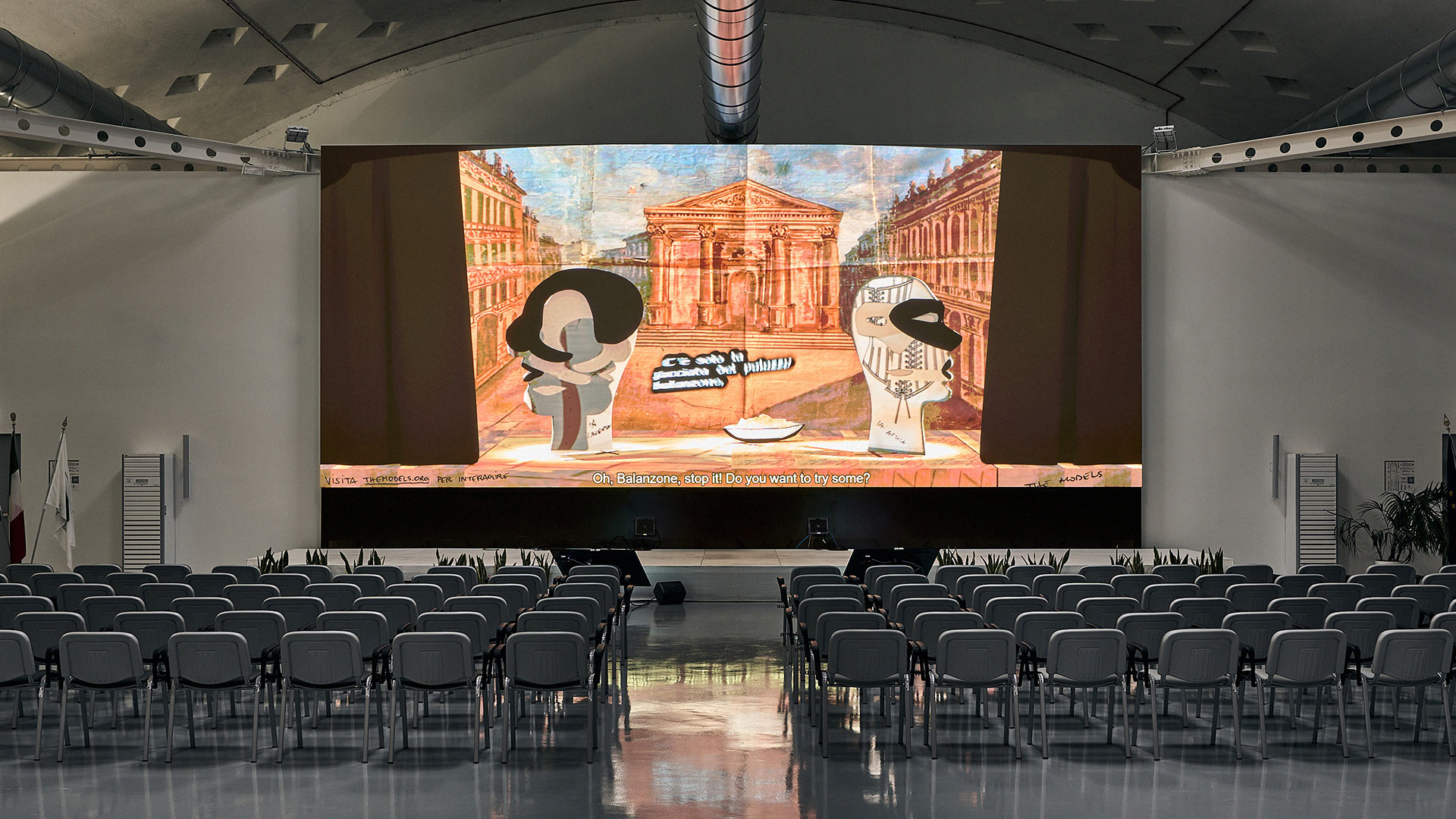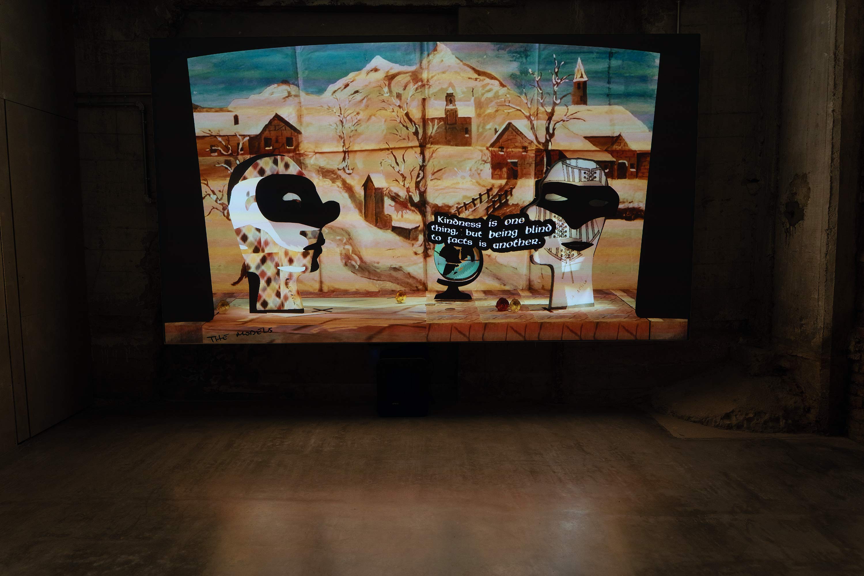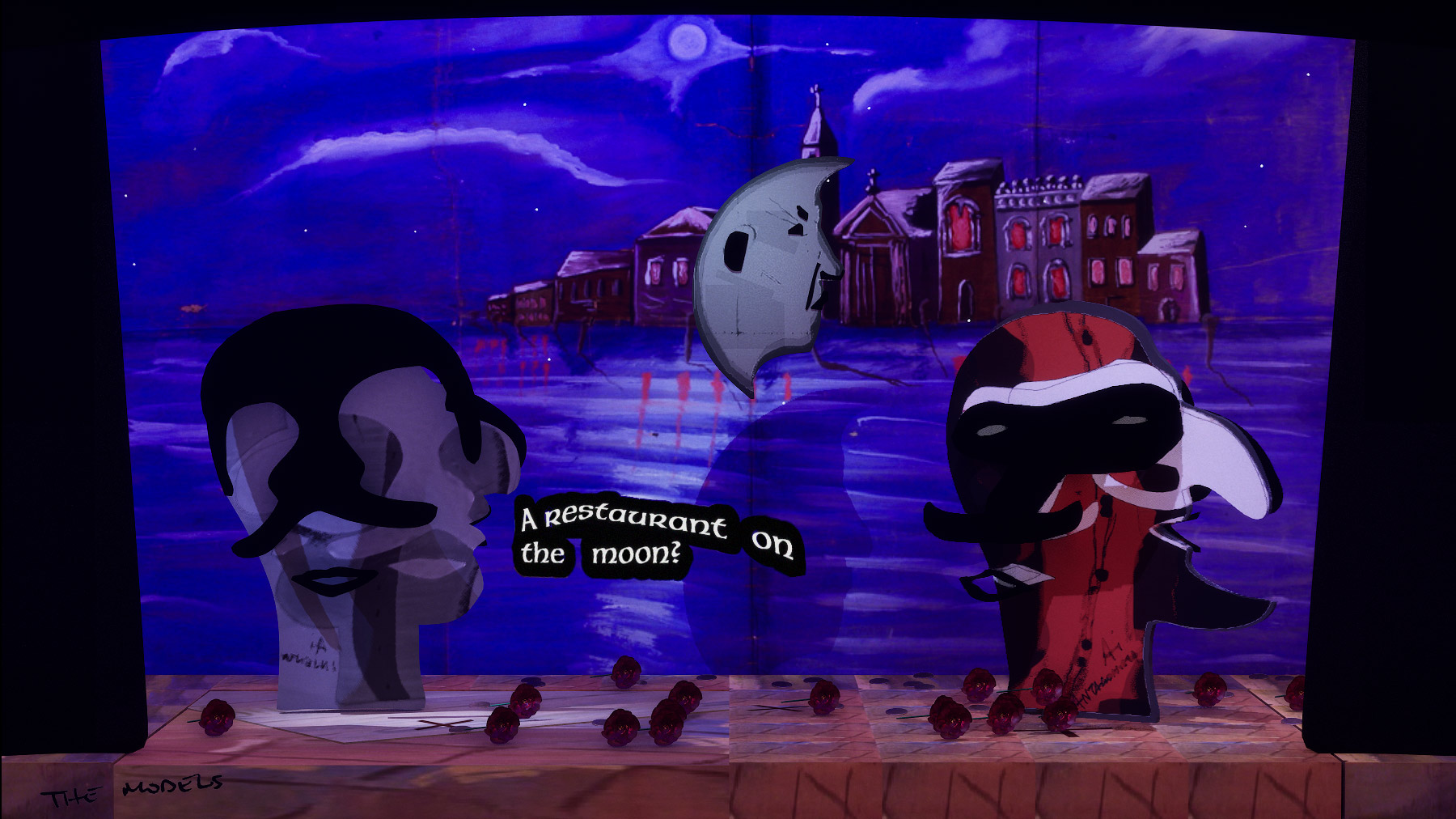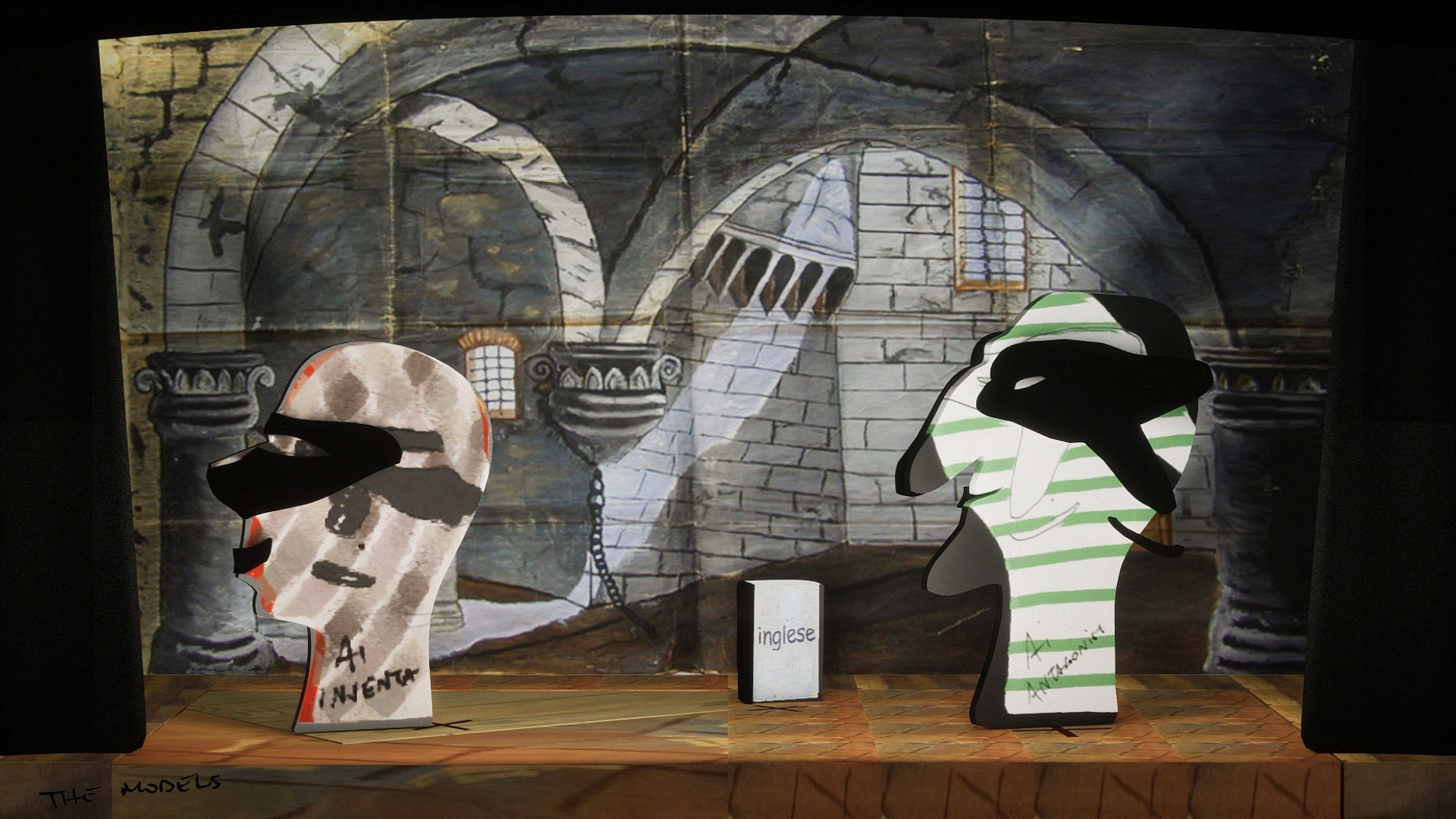 The Models is an interactive installation exploring the improvisational nature of generative AI, and its sometimes nonsensical, sycophantic, or deceptive character. A live simulation running continuously for a year renders theatrical scenes improvised in a style and by a cast inspired by Italian Commedia dell'Arte. Dialogues are generated by a system of AI models prompted to impersonate traditionally servile, lying or antagonistic Commedia masks, such as Arlecchino, and improvising around a set of controversial props that symbolise superstition, folklore, and falsehoods.