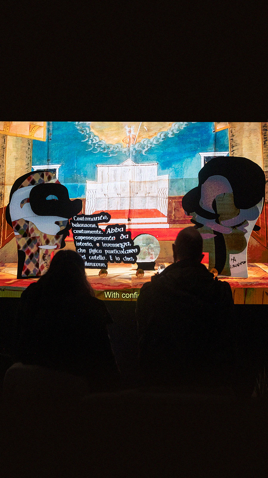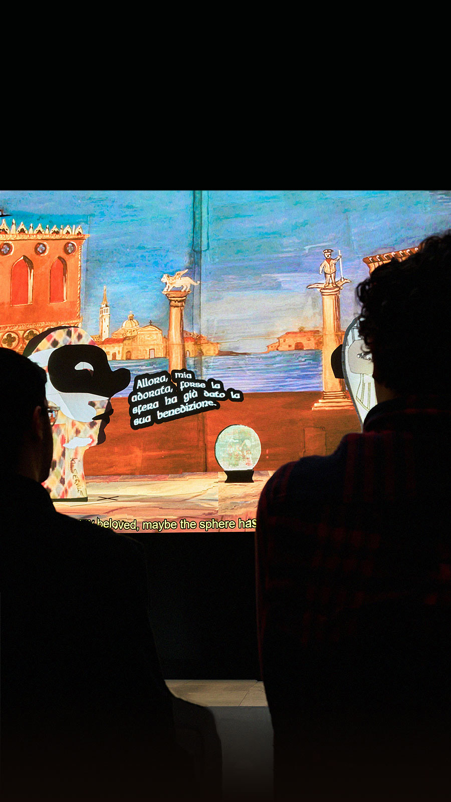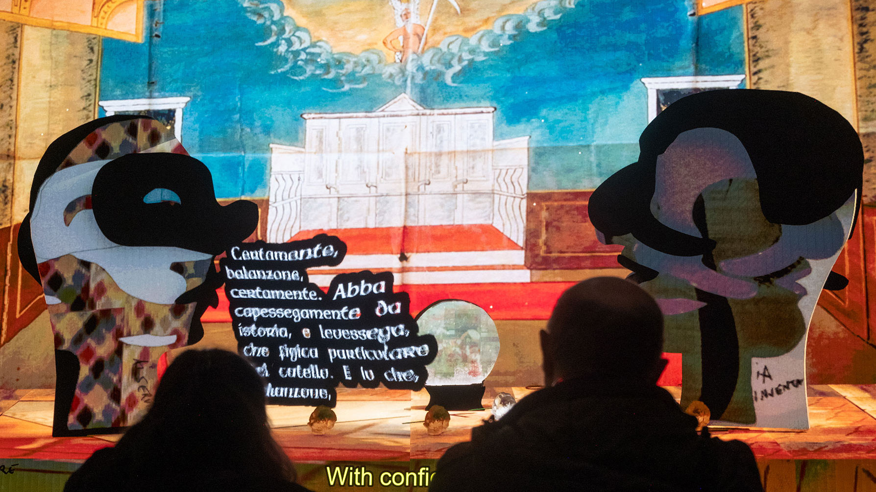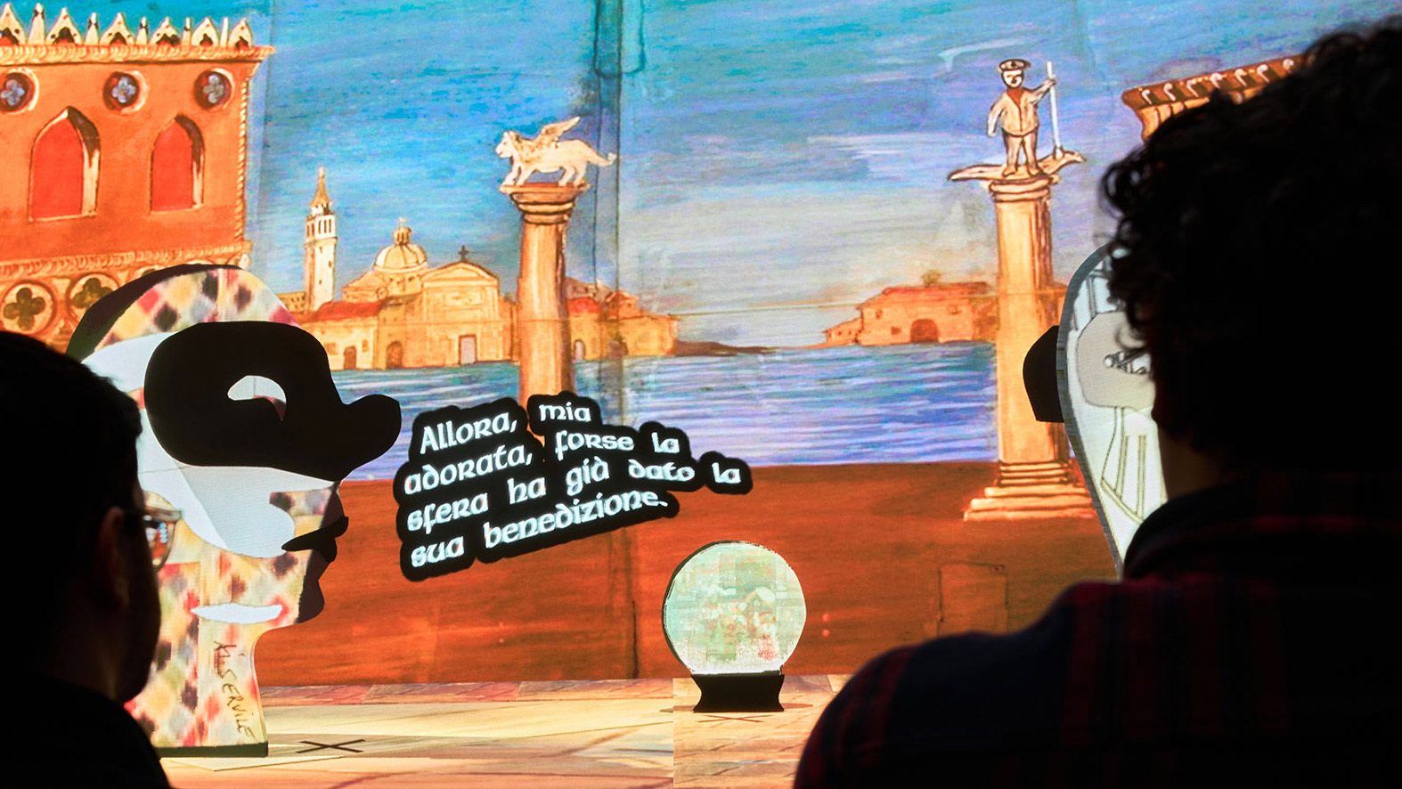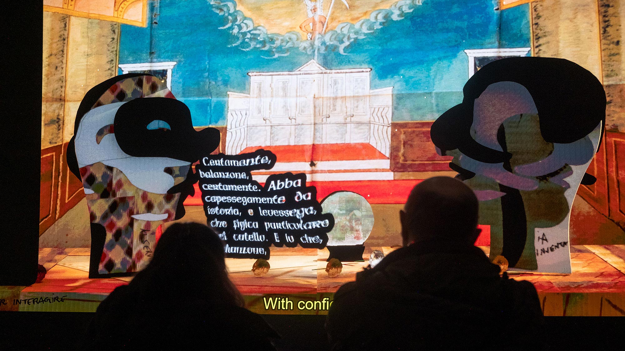 26,880 scenes can be rendered with bespoke lighting and music, and in response to the audience's casting and scenographic preferences as prompted through their phone. Influenced by the prompted scene and by Commedia archetypes present in their training dataset, the models' output is unpredictable and reliably rich of confabulation, mistakes, and surprise.