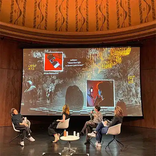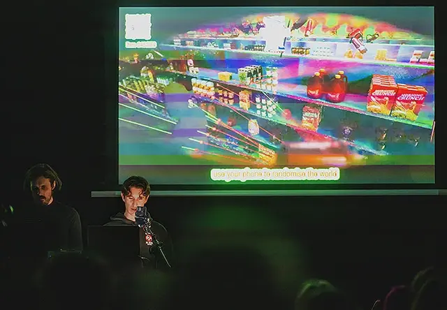 London−based artist duo dmstfctn explores complex systems through the lenses of simulation, fiction and experience. Their immersive performances, video installations and video games demystify systems by replicating and exploring them together with audiences, and remystify them by building new stories and worlds atop them.